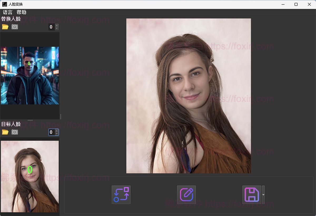 面部交换:您可以选择要交换的面孔,并应用该面孔到目标图像中,实现面部交换效果。