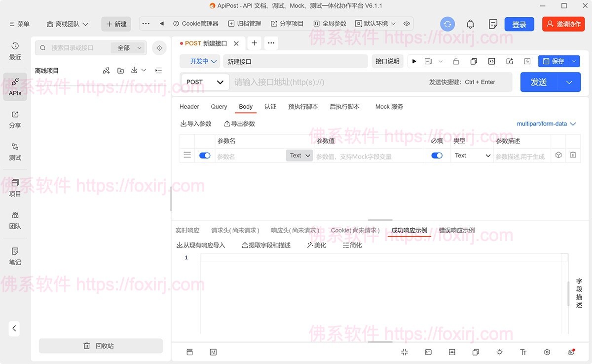 ApiPost是一个API调试,管理工具,支持模拟常见的HTTT请求,如POST,GET,支持团队协作,并可以直接生成和导出接口文档。ApiPost是后台界面开发人员或前端和界面测试人员使用一个键快速生成和导出API文档的必要工具。ApiPost = API接口调试工具 + 接口文档管理工具 + Mock 工具