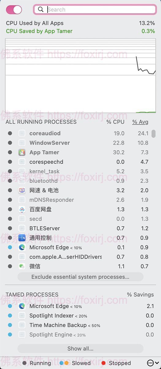 自动暂停不活跃应用程序:当您切换到其他应用或在后台运行时,App Tamer 会监测并自动降低那些占用过多 CPU 资源的应用程序的优先级。这样,您可以将更多的 CPU 资源留给当前正在使用的应用,提高响应速度和效率。