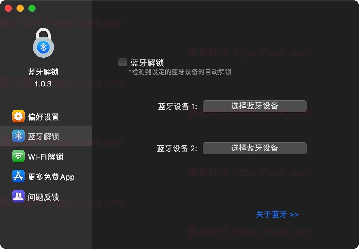 解锁,如此简单方便!《蓝牙解锁》,通过蓝牙、WIFi解锁Mac,支持三大应用场景:睡眠唤醒解锁;屏幕唤醒解锁;锁屏唤醒解锁。您可以使用手机或者其他设备进行解锁,方便快捷。