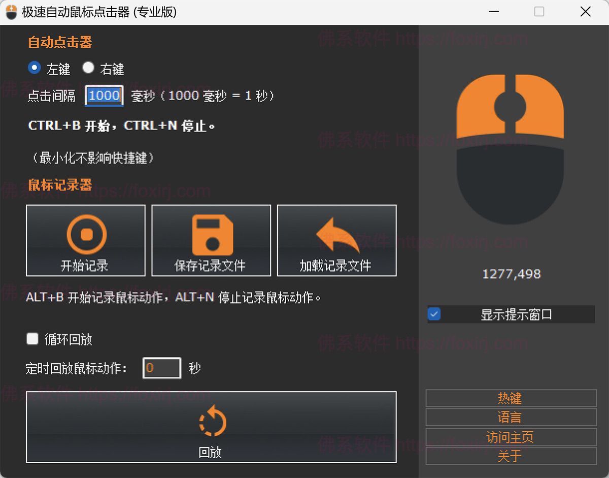 循环回放 和模拟鼠标动作 - 延迟鼠标模拟和点击 - 鼠标左键和右键点击 均可用