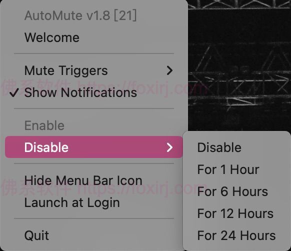 AutoMute是一款Mac应用程序,它提供了一系列功能,旨在帮助您在特定情况下自动将声音静音。只要AutoMute正在运行,每当您的Mac被锁定、进入睡眠状态、关机或一副耳机断开连接时,声音将自动静音。