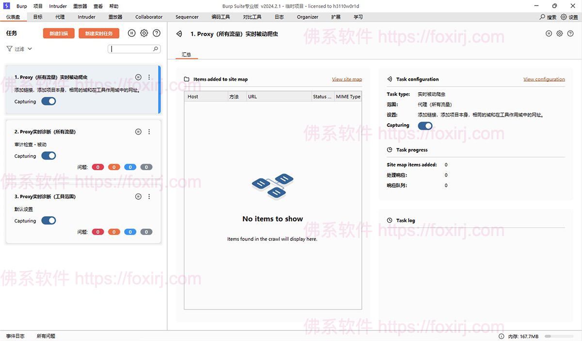 被动扫描器:Burp Suite Pro能够 passively 检测应用程序中的漏洞,并提供有关潜在问题的警报和建议。这种方式不会向目标应用程序发送任何攻击,而是通过分析传入和传出的数据流量来识别潜在风险。