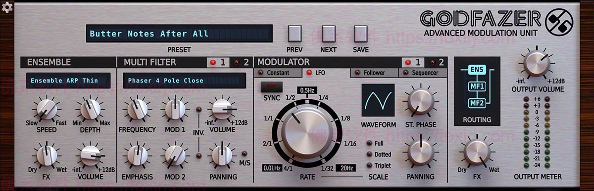 多种模式选择:Godfazer支持多种调制模式的切换,用户可以根据需要选择不同的调制模式来实现不同的音频效果,从而扩大了音频处理的可能性。