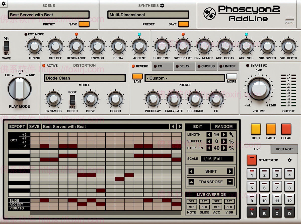 D16 Group的Phoscyon是一款经典303模拟合成器插件,旨在再现303型合成器的声音和特色。