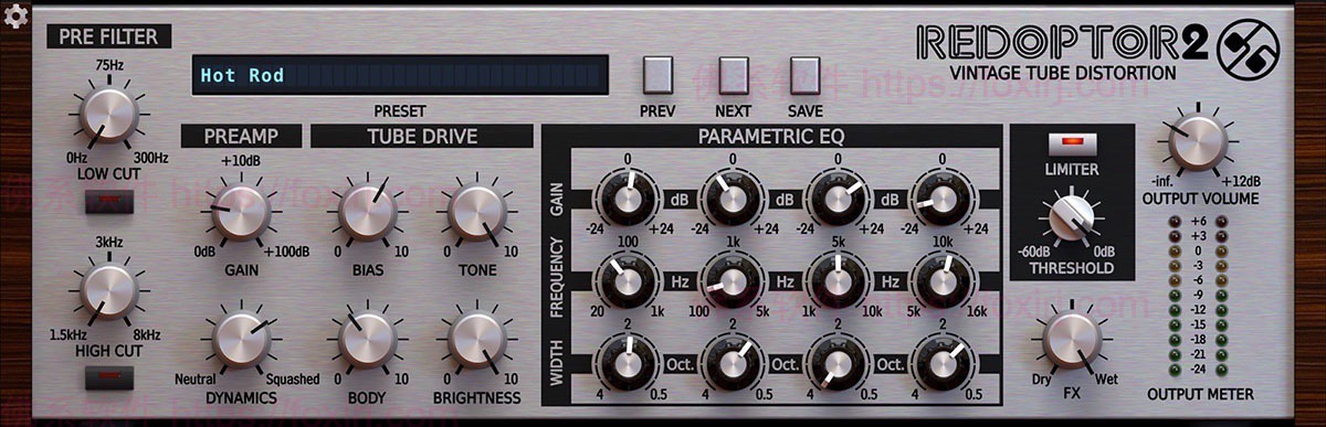 模拟真空管失真:Redoptor内置了经典的真空管放大器模拟引擎,可以产生温暖、饱满的失真效果,仿佛使用了真正的电子管设备一样。