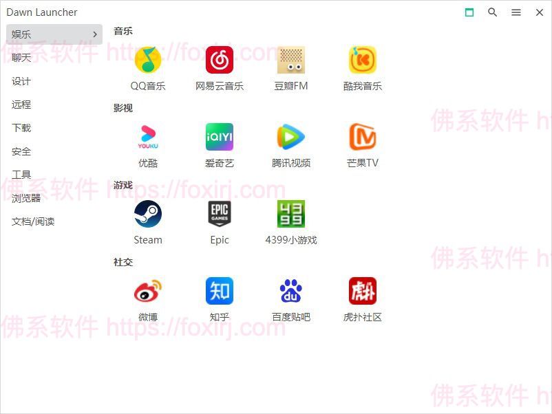 Dawn Launcher 是一款Windows快捷启动工具,帮助您整理杂乱无章的桌面,分门别类管理您的桌面快捷方式,让您的桌面保持干净整洁。支持相对路径(便携路径),支持扫描本机开始菜单、本地Appx应用列表添加项目、支持多项目添加,一次启动多个项目、支持添加网址并一键获取网址信息。