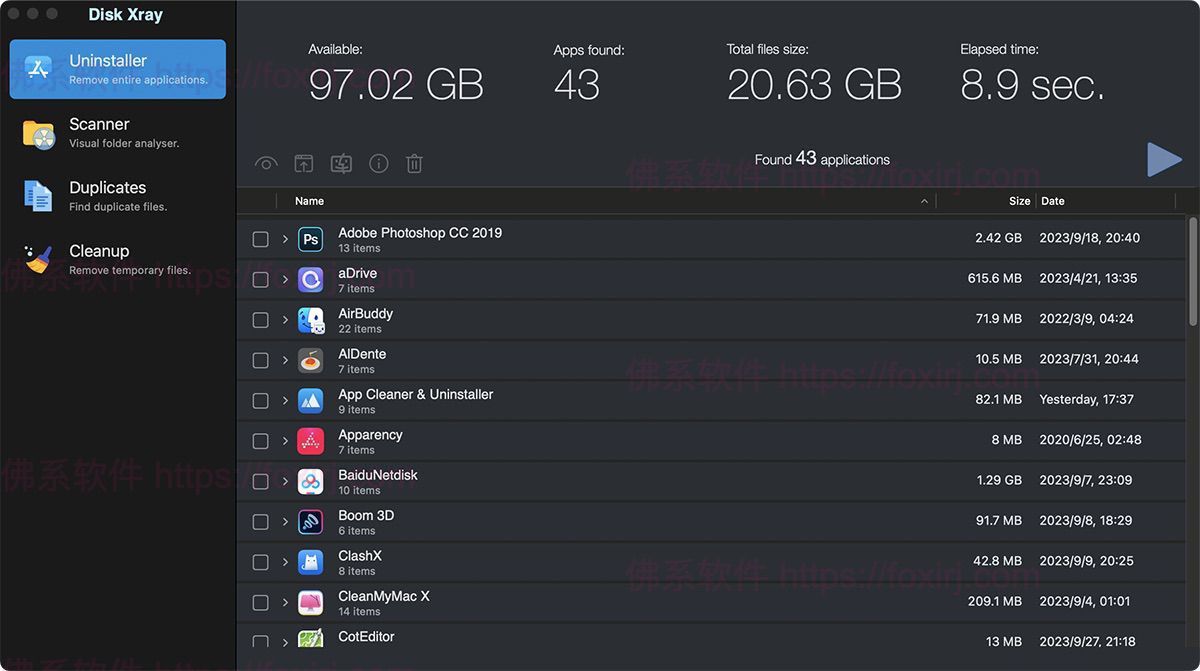 磁盘扫描和分析:Disk Xray可以扫描您的磁盘驱动器,并分析磁盘上的文件和文件夹,以显示它们所占用的空间。它提供了可视化的图表和图形,让您更直观地了解磁盘使用情况。