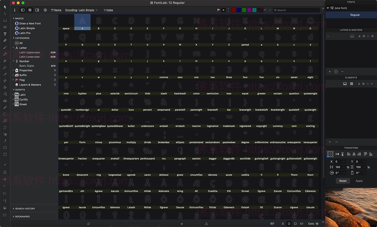 Fontlab是一款范围广泛的字体设计和编辑软件,广泛用于字体设计师和排印设计等专业设置中。您不仅可以创建新的字体,还可以编辑和修改现有的字体。它的主要优点之一就是可以直接导入AI或EPS矢量格式,可以修改现有字体,也可以根据要求完全重新设计所需的字体。它与Adobe Illustrator无缝合作,直接从AI复制字体形状,并将它们粘贴到FontLab。包含用于添加和转换TrueType和adobetype1字体的字符。其他不错的功能包括支持多达100个撤消/重做操作,导入/导出单个EPS模式字符等。
