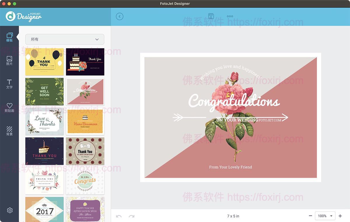 Mac上一款强大且易用的图片设计软件。FotoJet Designer让图片设计变得前从未有的简单. 通过它提供的900+模板, 上千款资源以及强大的编辑工具, 即时你没有任何专业设计技巧,你也可以像个设计师一样快速地设计出独一无二的社交图片, 卡片, 邀请函, 海报, 传单以及横幅等.
