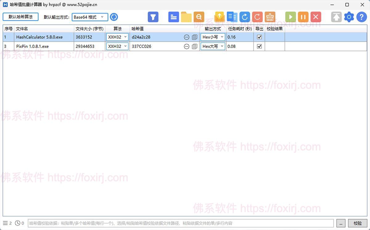 - 计算所得哈希值的输出方式可选择 Base64 或十六进制大/小写字母。