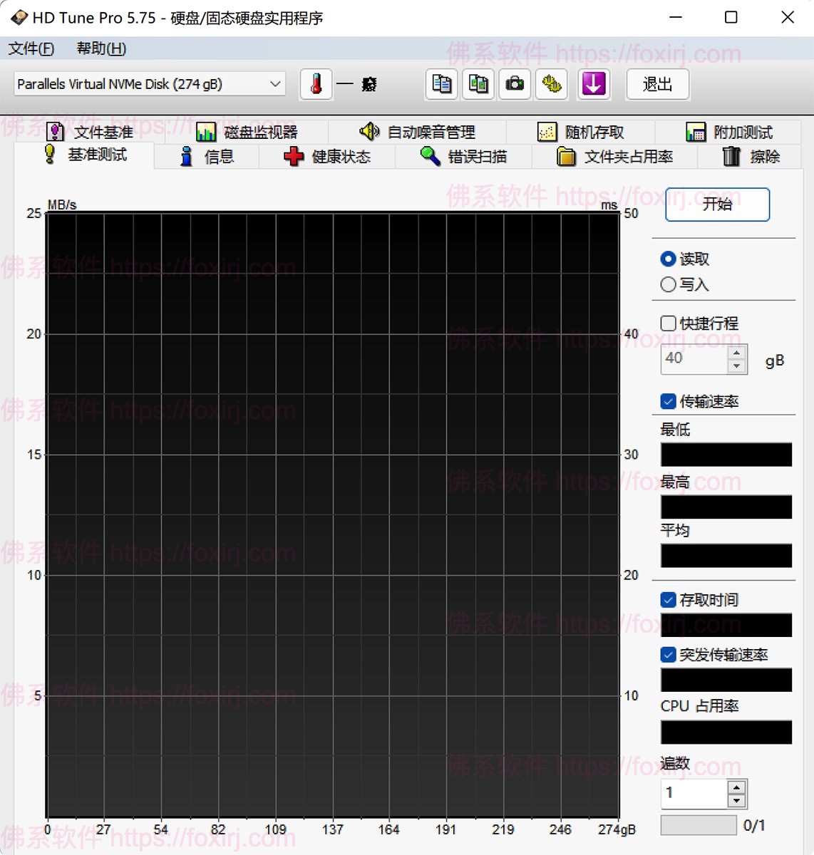 应用程序可以运行各种类型的测试来评估设备的性能。HD Tune Pro可以让您测量传输速率,访问时间和突发率以及CPU使用,而传输数据。