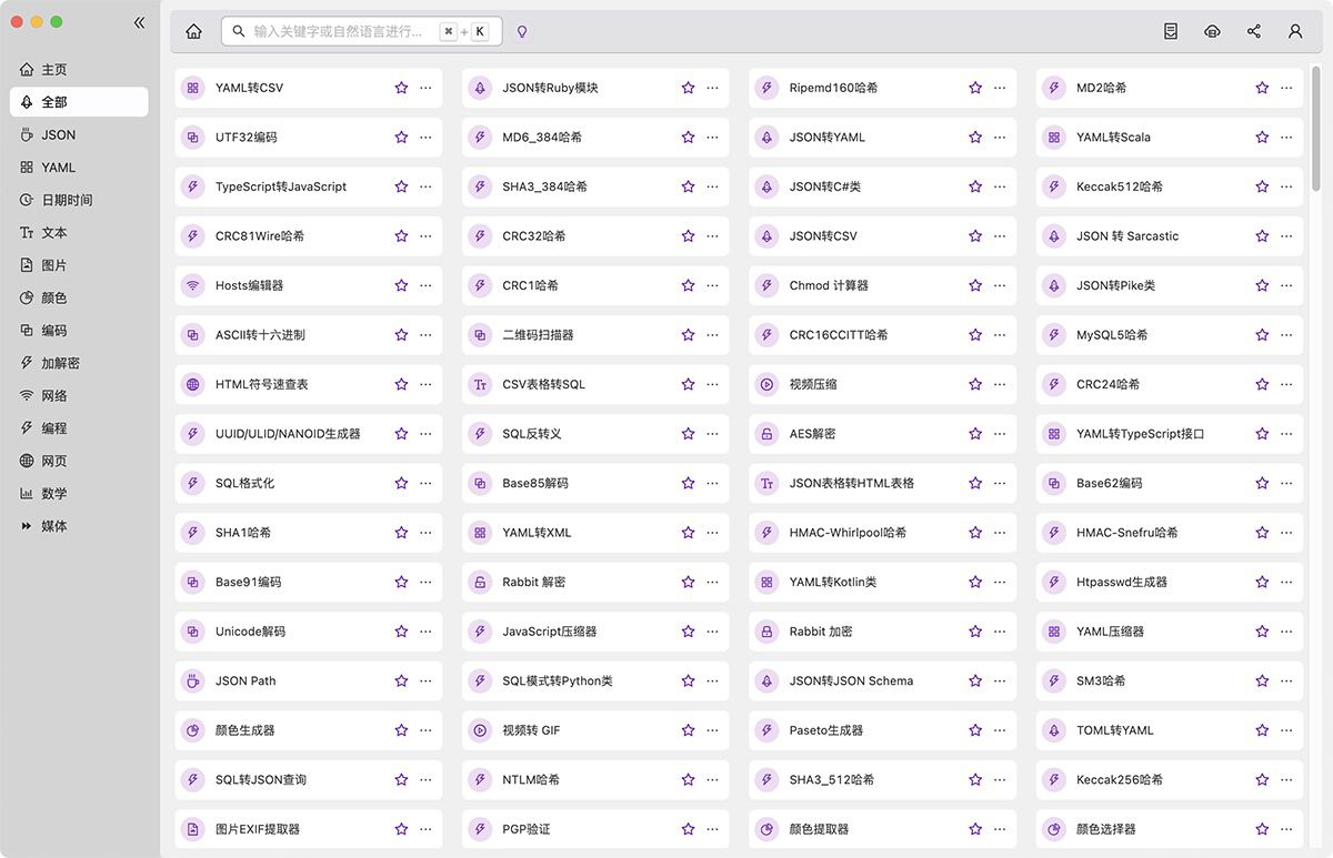 He3 是一个包含近 400 种工具的终极开发者工具箱,涵盖了前后端开发者的日常所需。He3 的智能搜索和剪贴板智能推荐 将您的开发效率提升到一个新的水平。