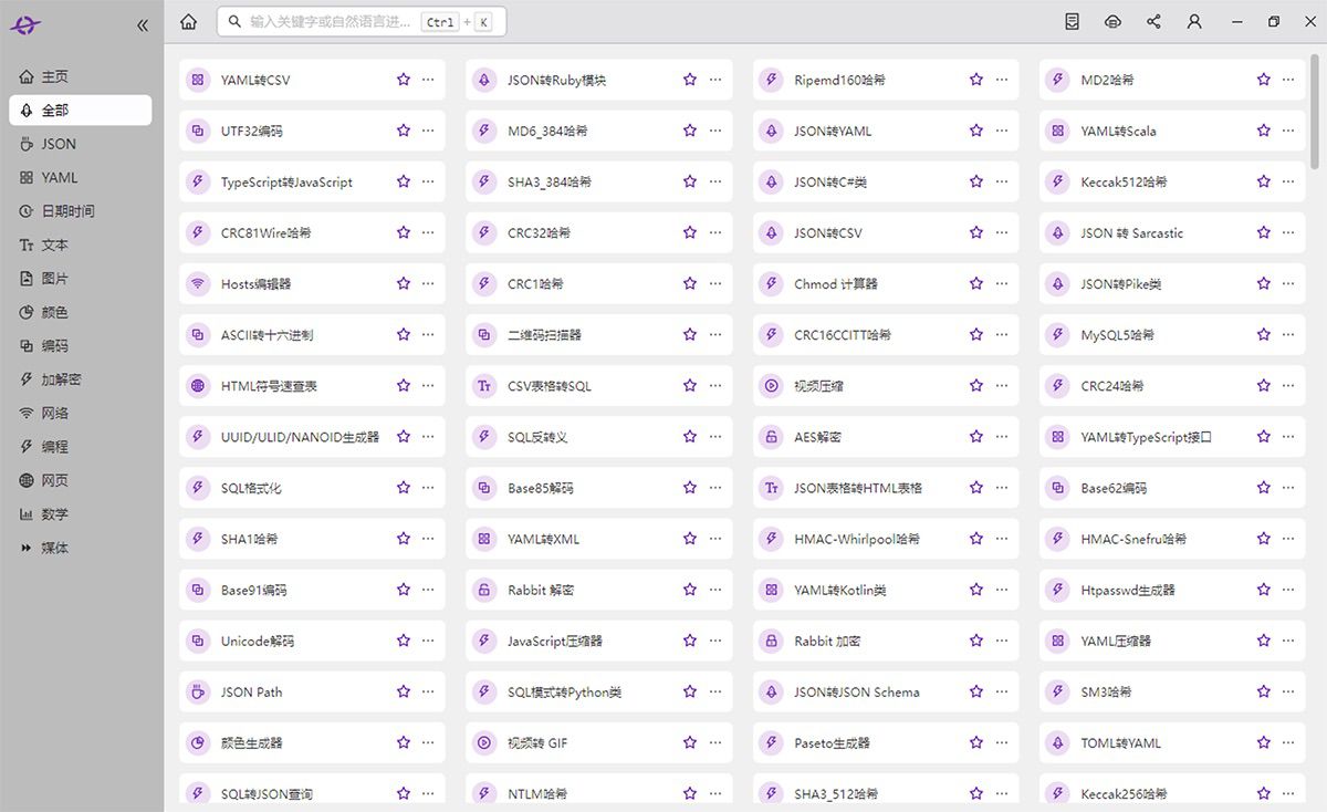 He3 是一个包含近 400 种工具的终极开发者工具箱,涵盖了前后端开发者的日常所需。He3 的智能搜索和剪贴板智能推荐 将您的开发效率提升到一个新的水平。