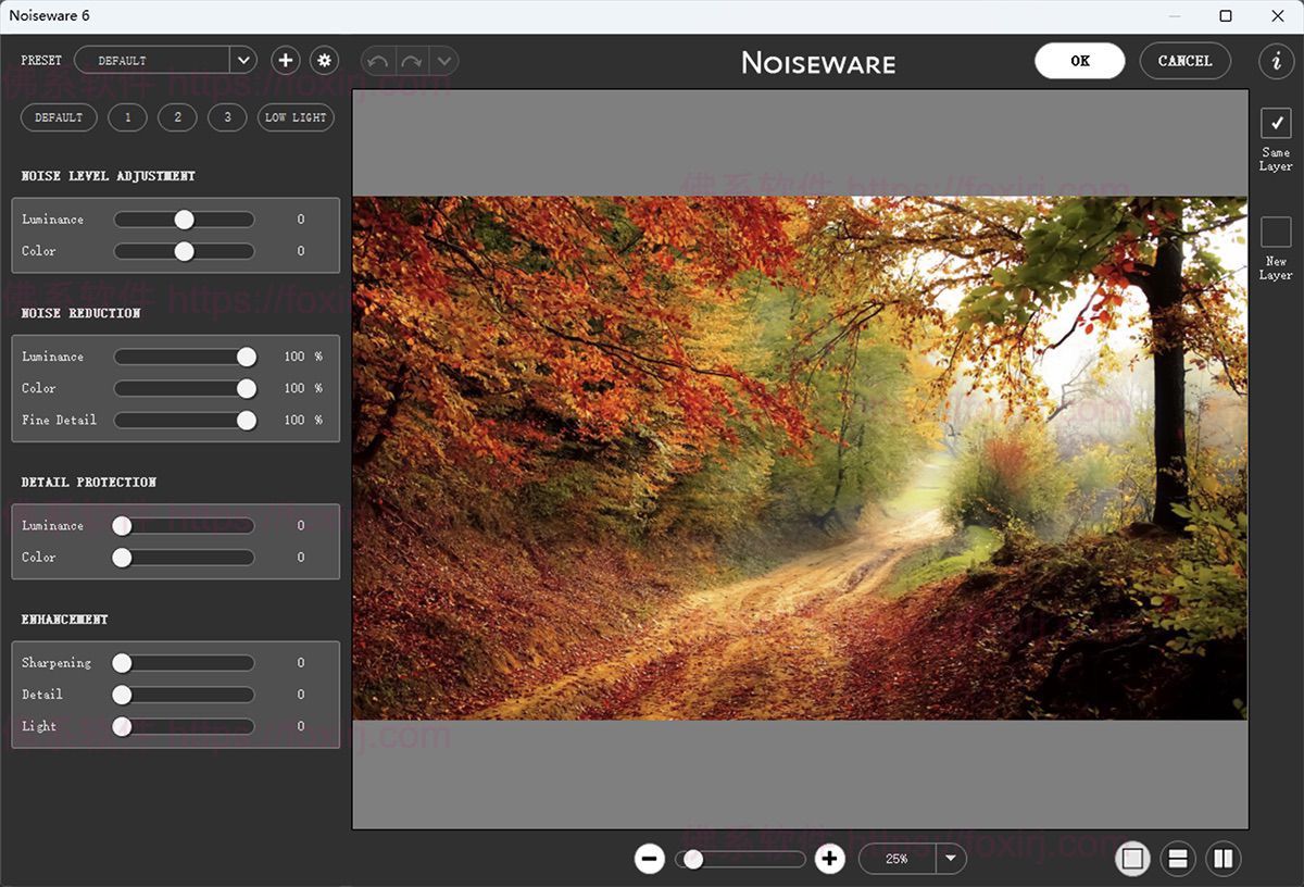 噪点降低:Noiseware的主要功能是减少图像中的噪点,包括色彩噪点和亮度噪点。这有助于改善图像的清晰度和细节,特别是在低光条件下拍摄的照片。