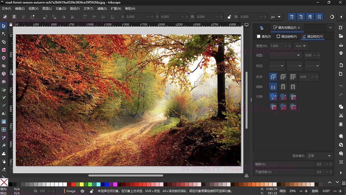 描边和轮廓:您可以为图形对象添加描边和轮廓线,并选择不同的样式、宽度和颜色。此外,Inkscape还支持虚线、箭头和端点样式等高级描边选项。