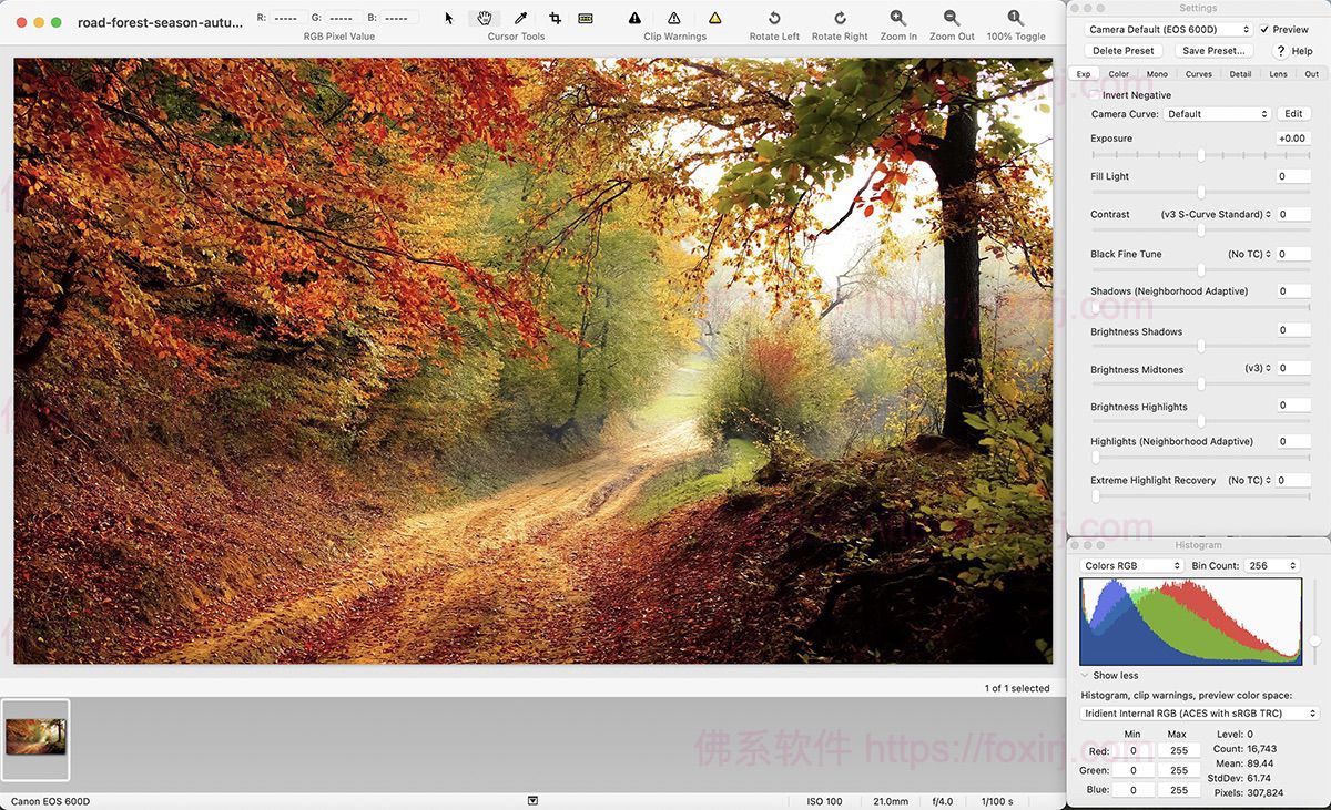 您可以完全控制转换过程的每一步,RAW,RGB和LAB色彩空间中完全可编辑的色调曲线,高级高光恢复,白平衡,降噪,锐化,曝光补偿,亮度,对比度,饱和度等。