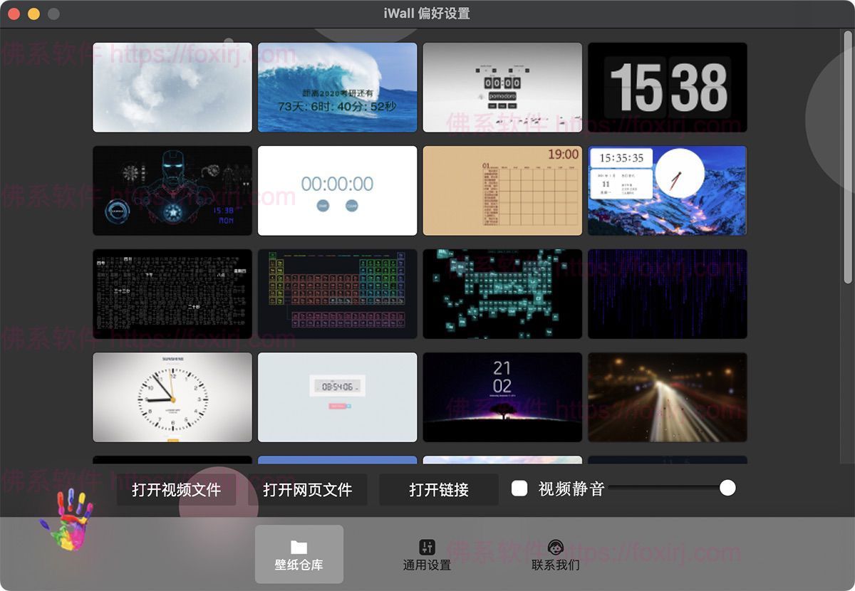 iWall是一款可以使用任何格式的漂亮视频(无须转换),图片,动画,Flash,gif,swf,2D,3D,程序,网页,App,网站做为您的动态壁纸,动态桌面的Mac软件。