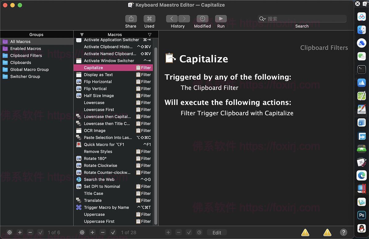总的来说,Keyboard Maestro 提供了丰富的自动化功能和定制选项,适合需要高效完成日常任务的 Mac 用户使用。