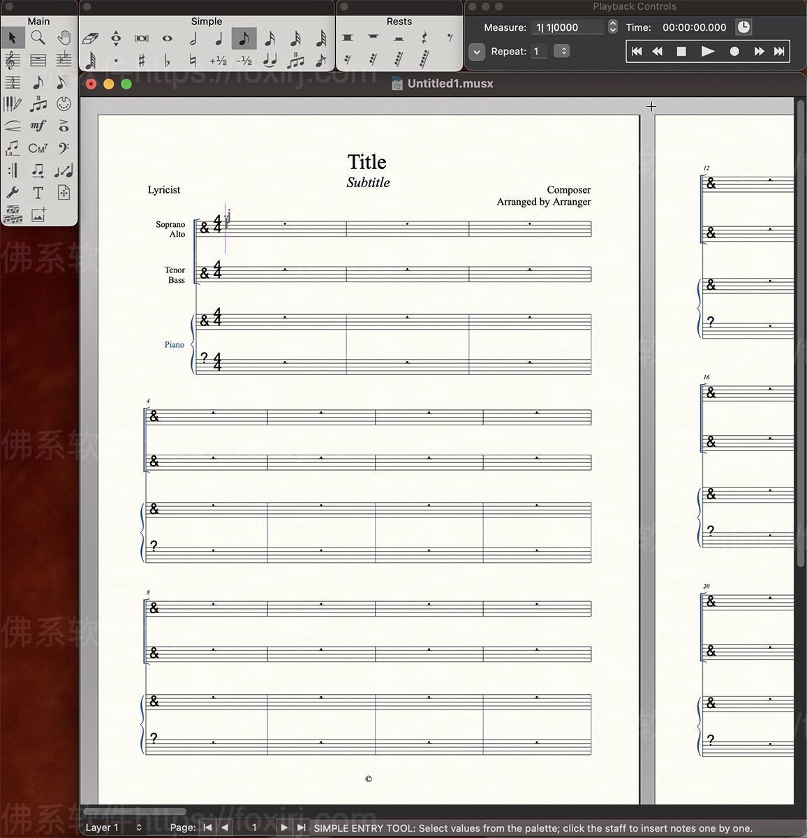 - 直观的界面设计:支持拖放、快速输入,使用户可以高效创建复杂的乐谱。
