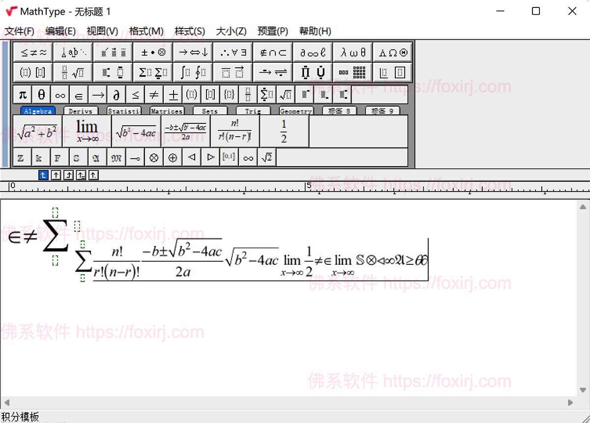 所见即所得:添加一个公式时,点击MathType界面中的模板,模板设计样式将直接结果显示在MathType编辑框中。对此问题模板可以进行选择适当的修改,以完成计算公式的编辑工作任务。