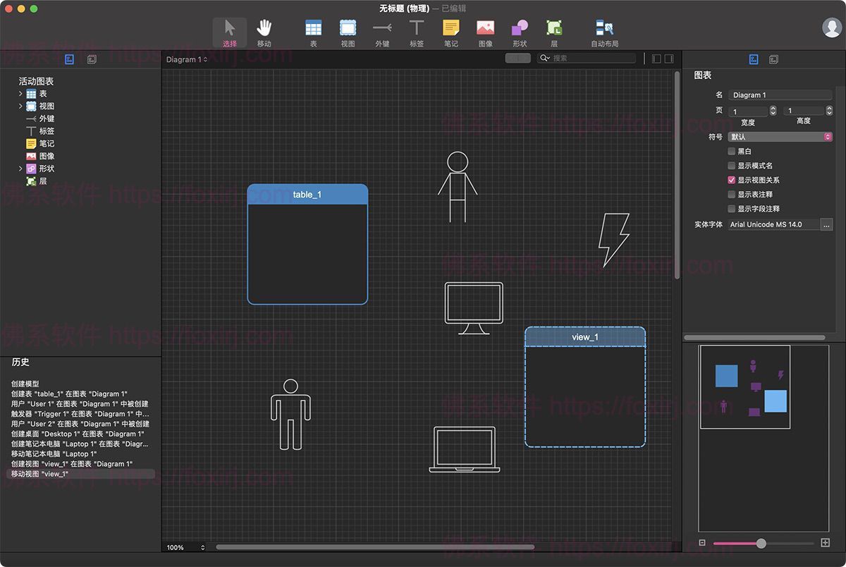使用专业的对象设计器创建、修改和设计你的模型,适用于表和视图。此外,Navicat Data Modeler 支持三种标准的符号:Crow’s Foot、IDEF1x 和 UML。