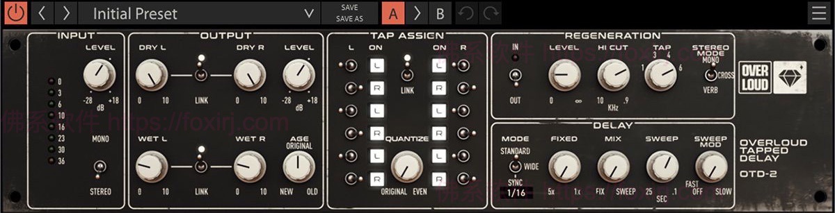 Overloud Gem OTD-2是一款模拟经典延迟效果器的插件,它基于经典的OTD-2延迟单元进行了精确的建模。下面是Gem OTD-2的各种功能: