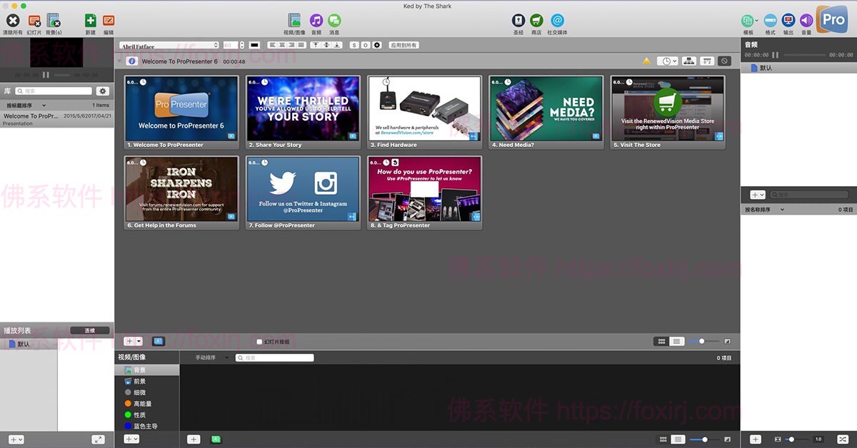 ProPresenter是一款专业的多媒体演示软件,常用于教堂、会议、演讲等场合。它的主要功能是将文本、图像、音频和视频素材以及各种特效无缝地呈现在大屏幕上。总的来说,ProPresenter是一款功能强大且易于使用的多媒体演示软件,能够帮助用户打造出引人注目的演示效果,并提供全面的控制和编辑功能。