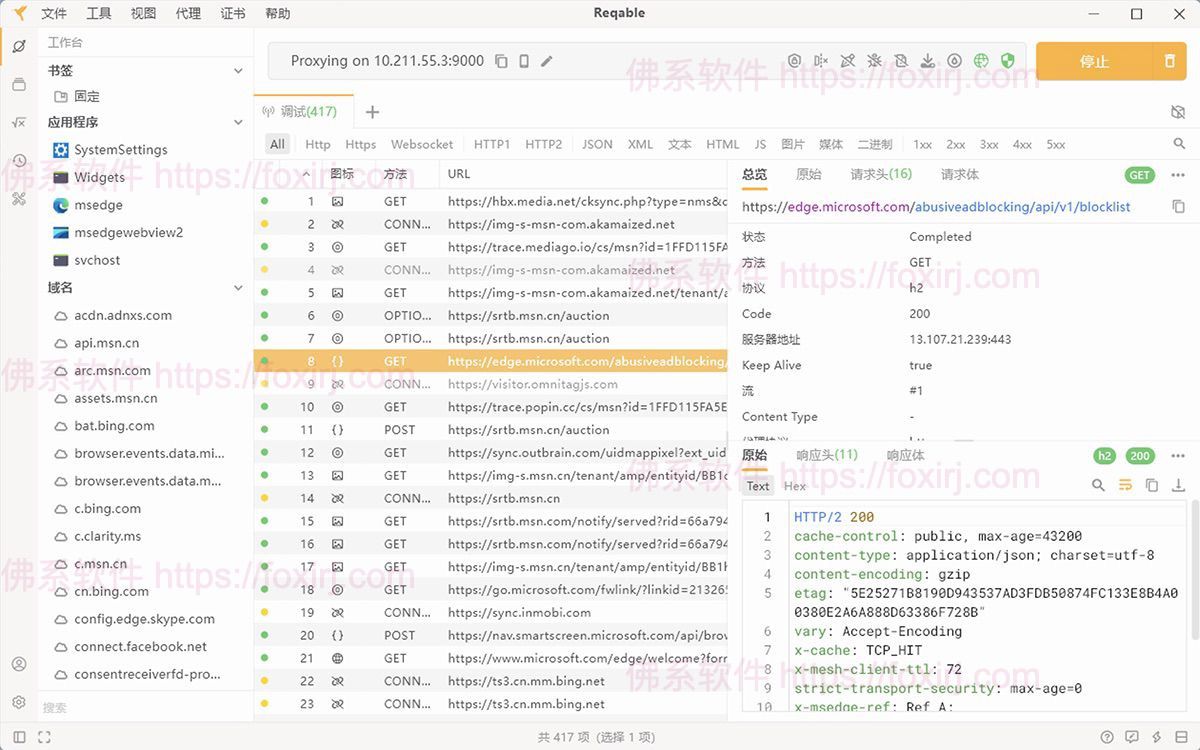 基于经典的MITM中间人代理方案捕获和分析您的应用流量,自适应HTTP/HTTPS/SOCKS4/SOCKS5等多种代理协议,并全面支持HTTP2协议,助您完整还原BUG现场。
