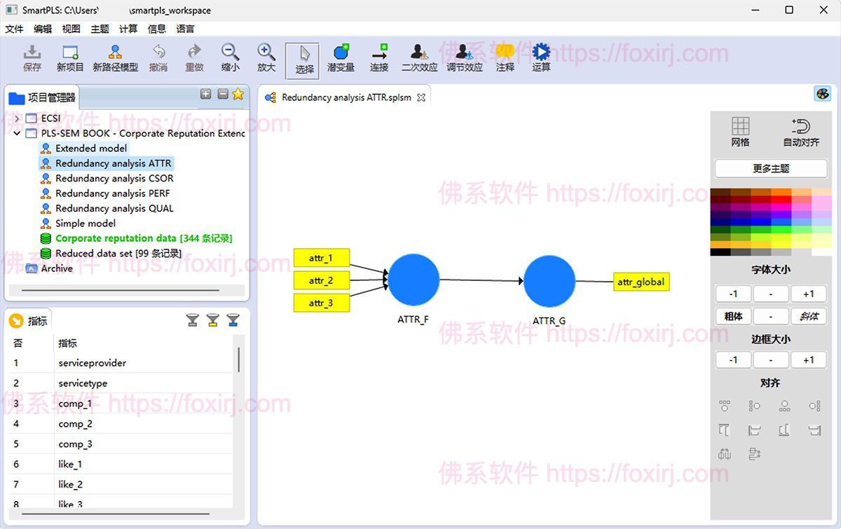 总之,SmartPLS是一个功能强大且易于使用的PLS-SEM软件,适用于各种学科领域的研究,可以帮助研究人员生成和测试复杂理论模型,并提供丰富的输出结果。