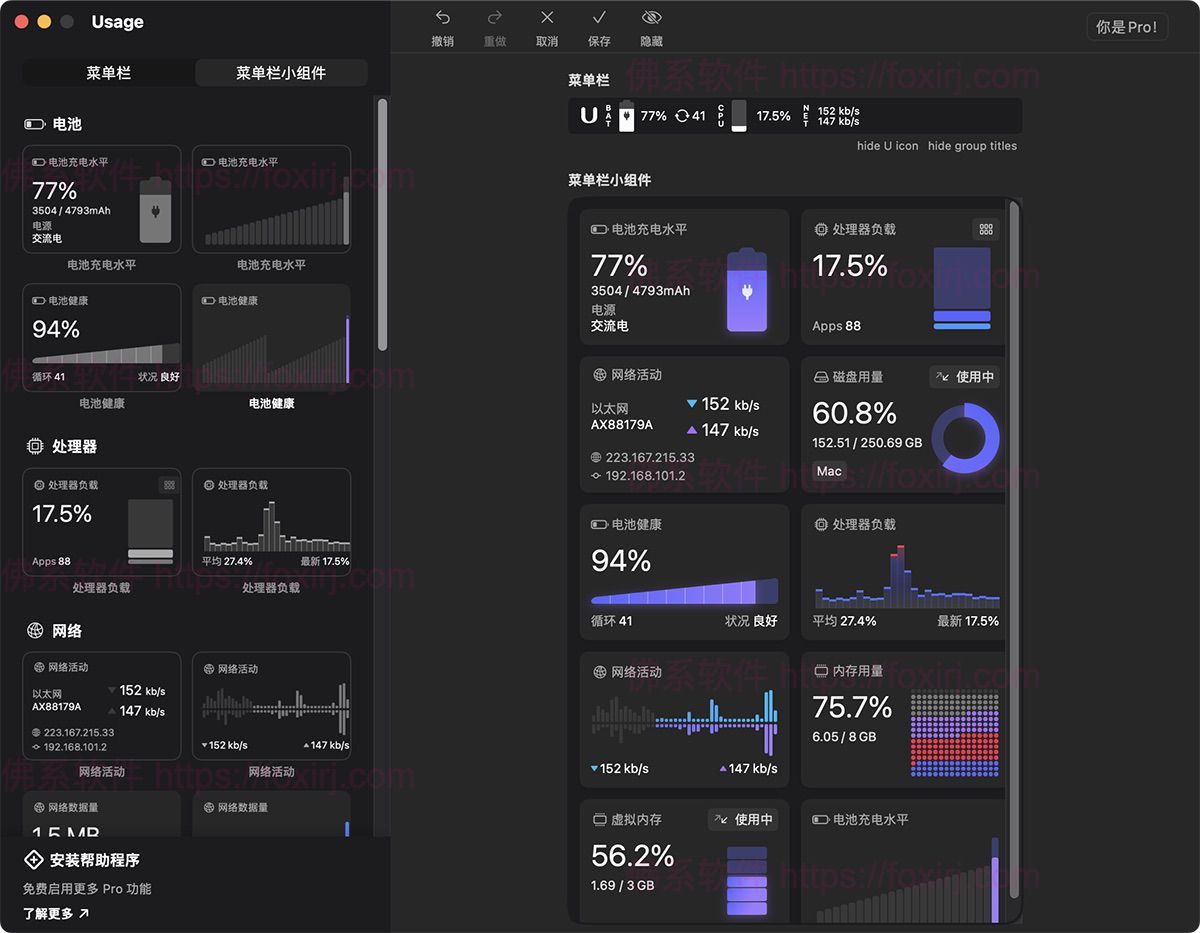Usage高度可定制,允许您完全决定在菜单栏和其弹出窗口中想要看到的内容。