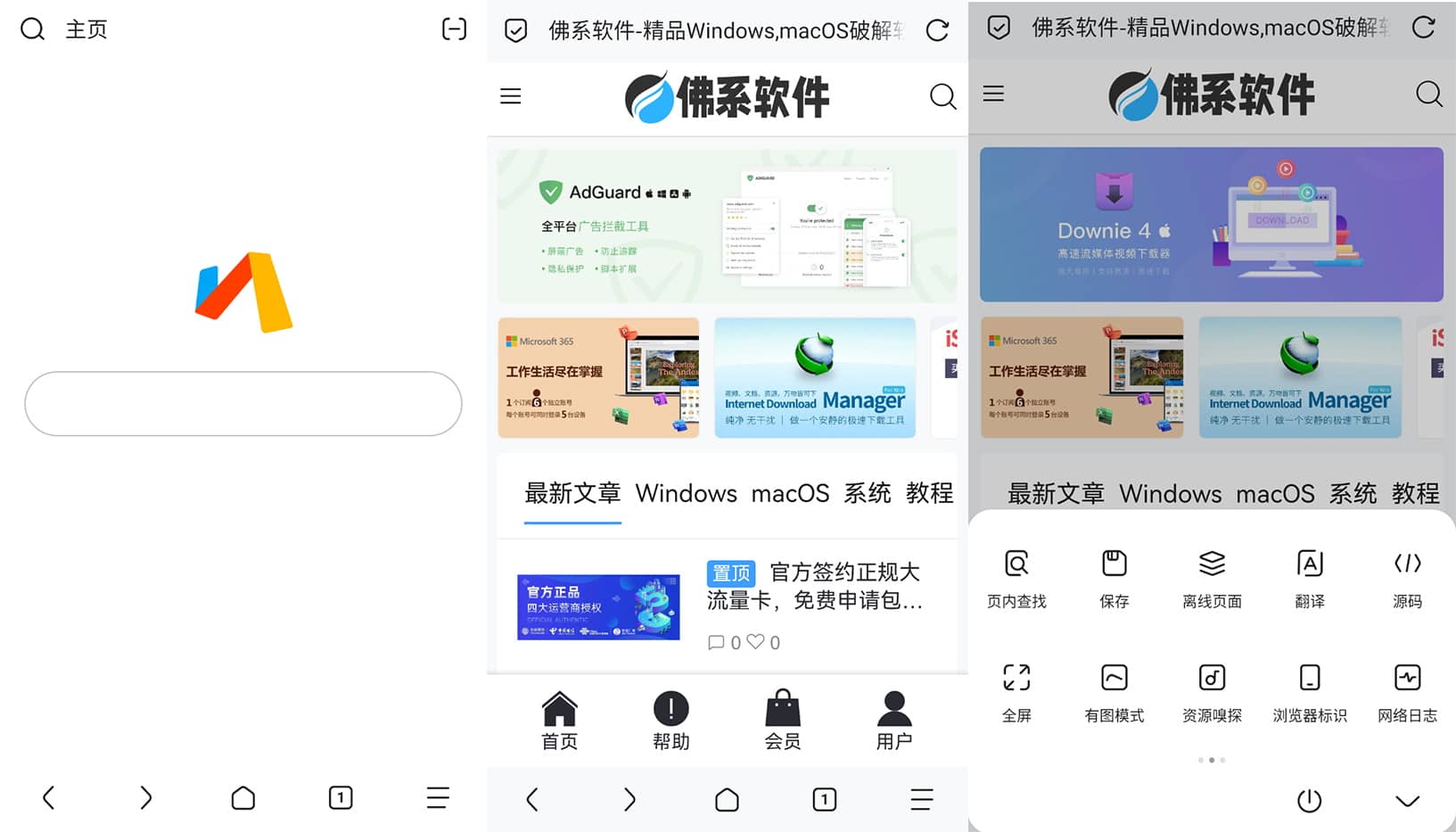 个性化定制能力突出,支持主题定制、主页高度自定义(可添加书签或选用网友分享模板),内置 18 种手势操作(长按底部导航栏触发),还能自由切换百度、谷歌、必应等搜索引擎,适配不同使用习惯。扩展功能丰富,原生支持油猴(UserScript)脚本与第三方插件,可通过安装脚本实现视频下载、网页优化、翻译、复制限制解除等进阶功能,扩展中心与社区也提供大量现成脚本供直接使用。