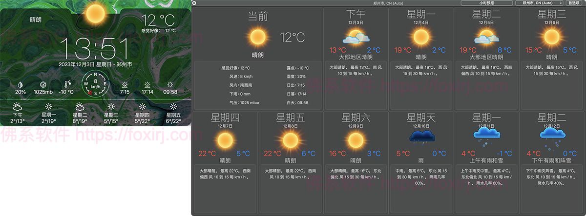 始终通过桌面上时尚的天气小部件及时了解天气情况!可选择多种吸引人设计风格的小部件。天气小部件应用程序图标还可以在Dock和菜单栏中为您提供简要的天气预报或当前状况概述。
