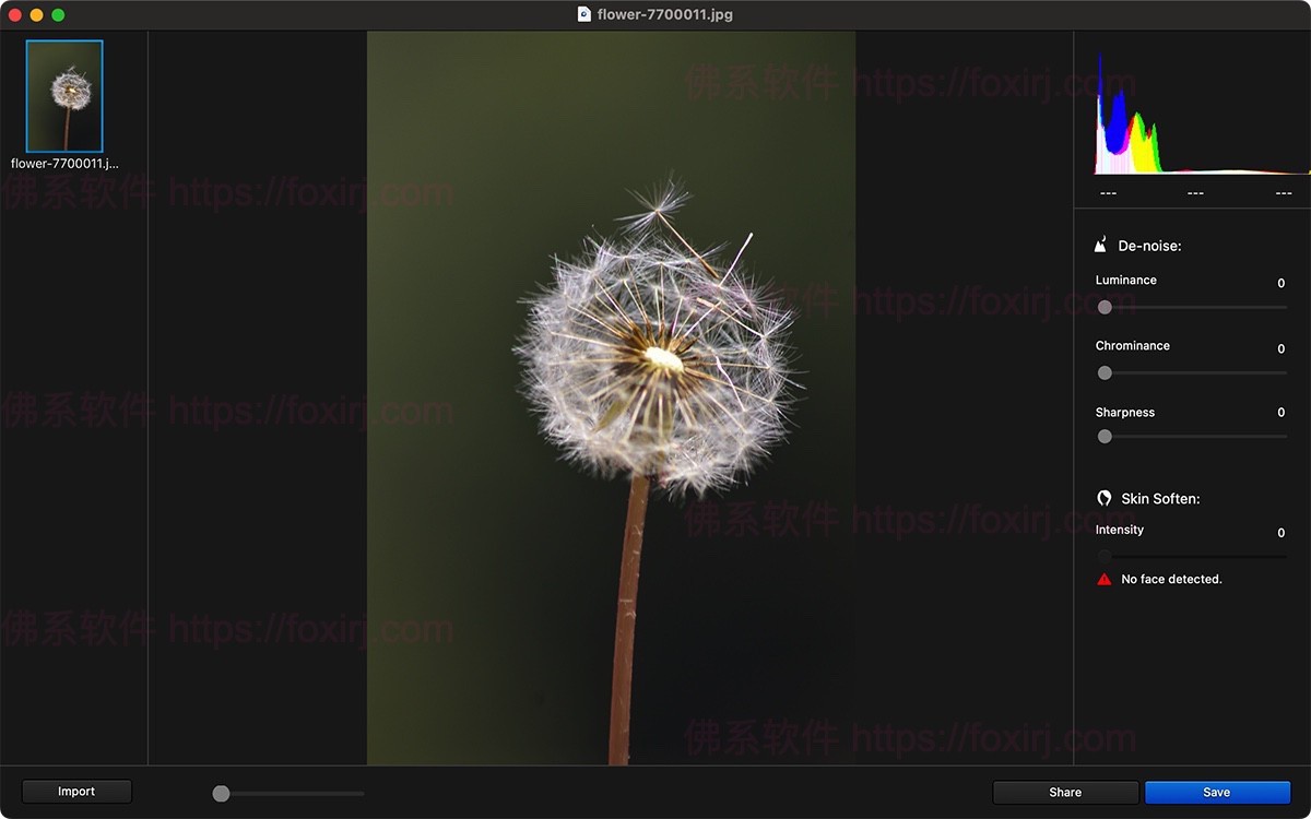 一键美化照片。 您可能比以往任何时候都更能使用智能手机或其他设备拍摄照片,其中有胶片颗粒,JPEG压缩伪像和其他缺陷。 即使使用摄像机,亮度噪声和色度噪声也是不可避免的。 WidsMob Denoise是一款全面的降噪软件,可获取无噪点的更好图像。