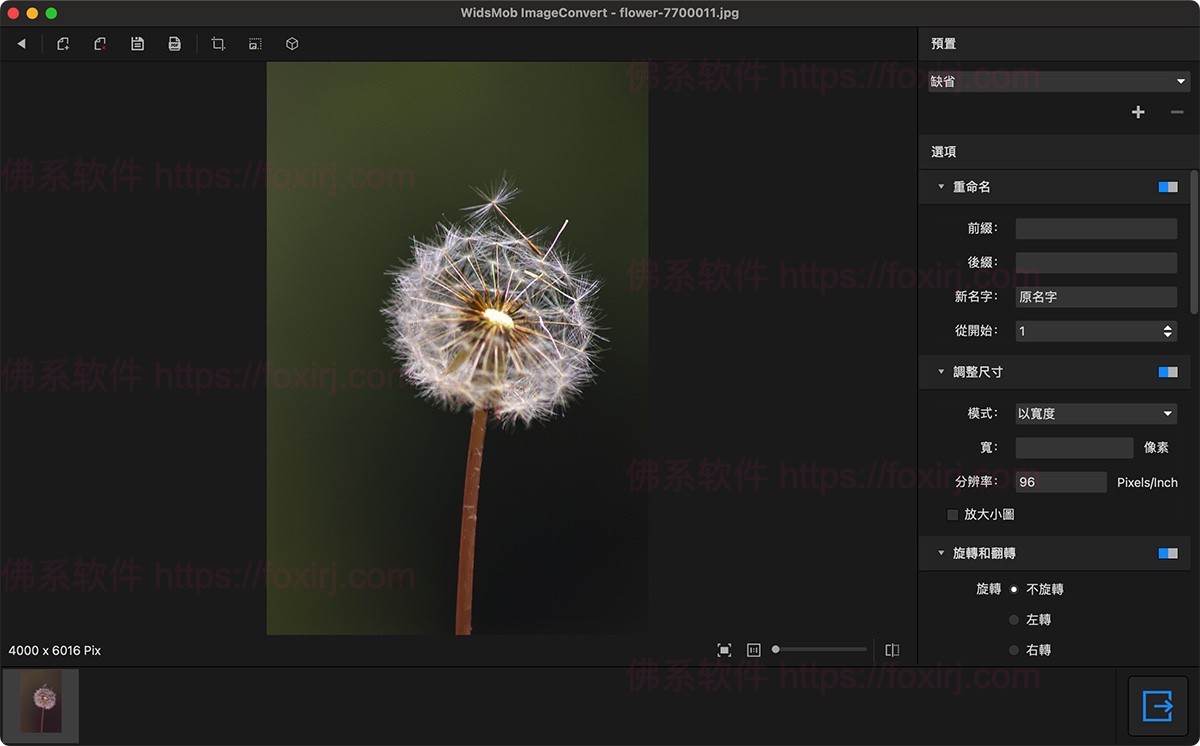 设置以原始名称覆盖文件,一键关闭以关闭并还原为原始图像。多种设置可调整大小,添加水印等以获得最佳效果。转换速度快,可以享受与程序的转换。