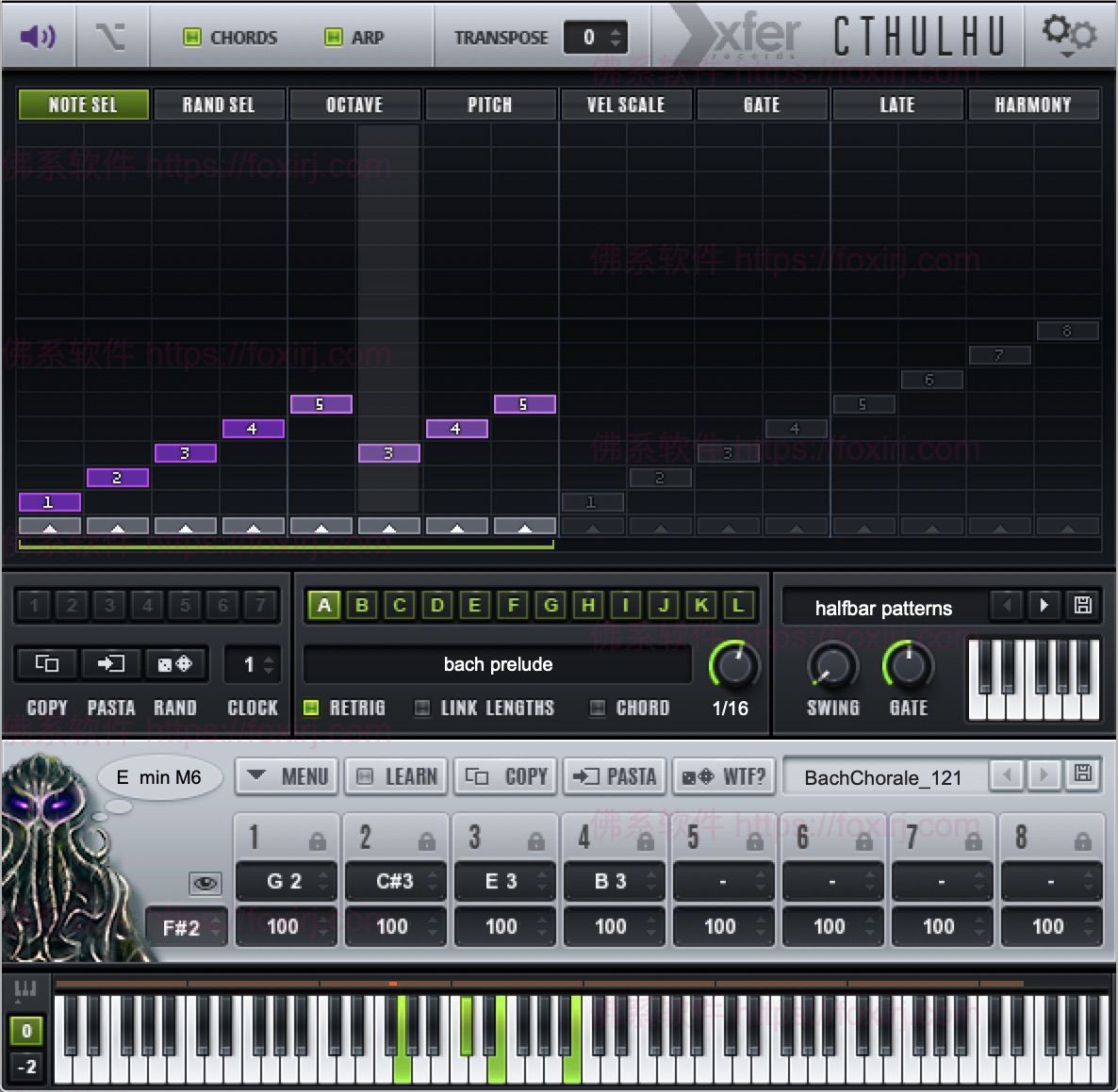 总之,Xfer Records Cthulhu是一款简单易用的MIDI和和弦工具,适用于各种音乐类型的制作。它包含了丰富的和弦库、可编程的琶音器、随机化功能和灵活的MIDI输出选项等特性,可以帮助音乐人快速创建复杂的和弦进度和旋律,并提高创作效率。